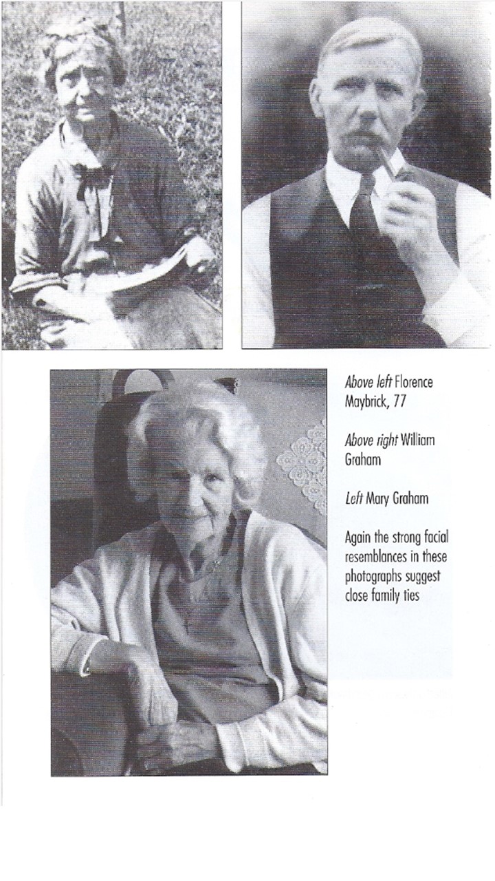As is well known, on leaving gaol in 1904, Florence Maybrick quite inexplicably adopted the surname Graham, a contraction of an old family name Ingraham, by all accounts. Not only did she adopt the name Graham but - in their later years - both Florence 'Graham' and William Graham went out of their way to look strikingly similar. [Feldman, plate section] Feldman sees this as part of the evidence that shows that William Graham was the illegitimate son of a fifteen-year-old Florence (and one Henry Flynn, for the record). Certainly, William's similarity to Florence seems significant.