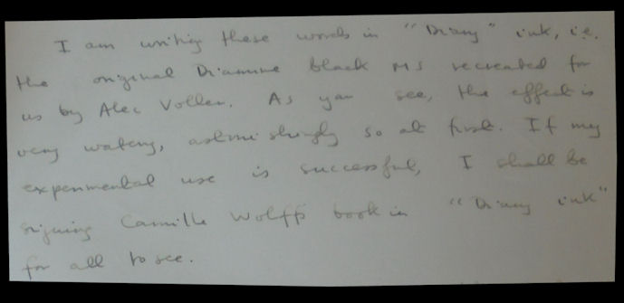The thing I don't understand about Voller's, analysis, though is that he says that if the Diary ink were Diamine of recent manufacture, "it would be blacker and more opaque". Now that of itself is fine but Robert Smith gives an example in his book of what he says is "pre-1992 Diamine Black Manuscript Ink" (something of possible concern if the forger purchased the ink in 1992) and unless I am completely colour blind this ink is in no way blacker than the Diary ink, it is, in my view, much more blue than the Diary ink. In fact, to me that ink looks blue not black. And it looks completely different to the example written by Nick Warren in 1995 from what is supposed to be the same ink (i.e. provided by Voller to Warren and Harrison in 1995).