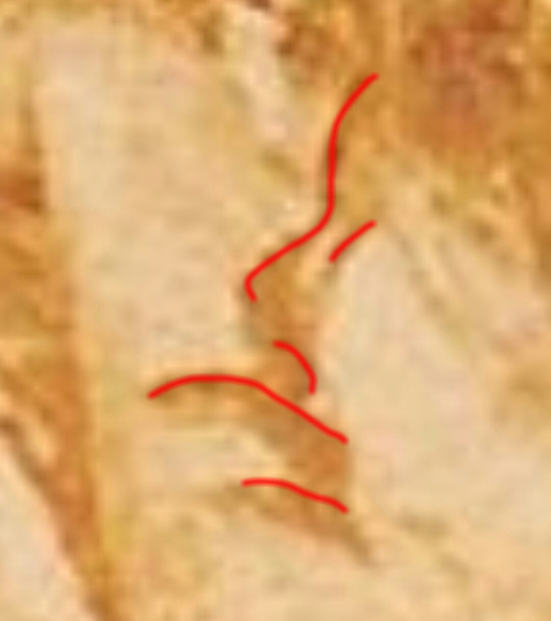 Of course they are random incisions mostly defensive, and they have nothing to do with a hidden letters or icons.