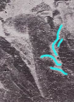 We can see here easily the bleeding (pink arrows) out of the main incisions (red)