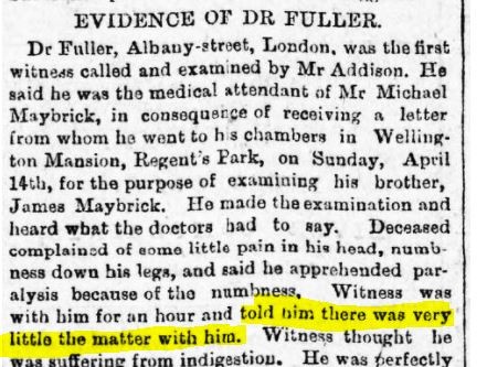 Ryan, like every other historian of the Maybrick case, was working from the trial transcripts.