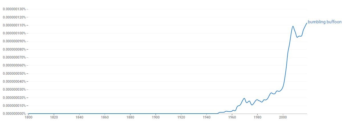 Instead, we were treated to no such examples, let alone any evidence that the well-known insult "bumbling buffoon" was in circulation before World War II.