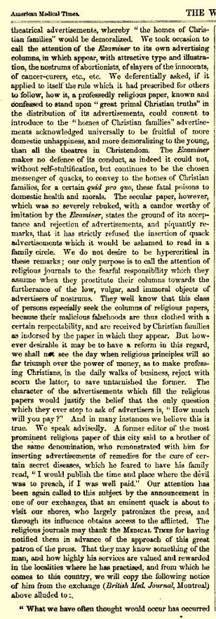 Note: The article starts at lower left of first column with the phrase "Our attention has been again called".