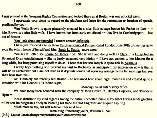 This is an excerpt of a letter written by the well-known African American abolitionist, William Cooper Nell.