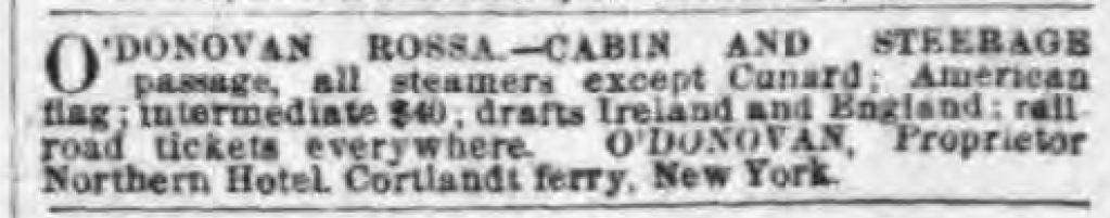 From the Northern Hotel Rossa also ran an unlicensed discount travel and ticket agency which by 1877 he had moved to offices at 263 Broadway.
