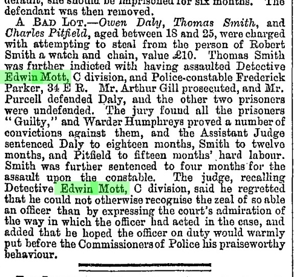 And who appeared for the police at Westminster Police Court on 6 August when Robert Gigner was committed for trial at the Old Bailey? None other than Detective Mott!