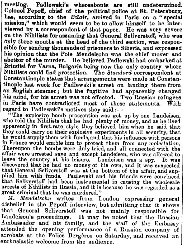 "At that time, the Foreign Bureau of the Tsarist Secret Service, the Okhrana, had its headquarters at the Russian consulate in Paris and maintained a network of agents in Switzerland. The Foreign Bureau used provocation primarily to persuade the French to take action against Russian radicals and cooperate with the Okhrana. The most notorious provocation occurred in Paris in 1890, when an Okhrana operative, Arkadiy Harting, organized a team of bomb-throwers whom he later betrayed to the Sureté. Their heavily publicized arrests helped convince the French public of the dangers posed by Russian radicals in France. "