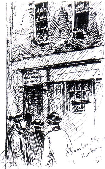 Jane Coram adds a sign in the window that Says: "Cats Meat Shop". Ive seen a drawing wich depicts this beautifully but cant find it now. However..The pic just posted by John Bennet shows this very sign in the window. Ive attached a blow up of that. So actually we have two drawings wich depicts the sign in the window. And Janes confirmation through her own rendition.