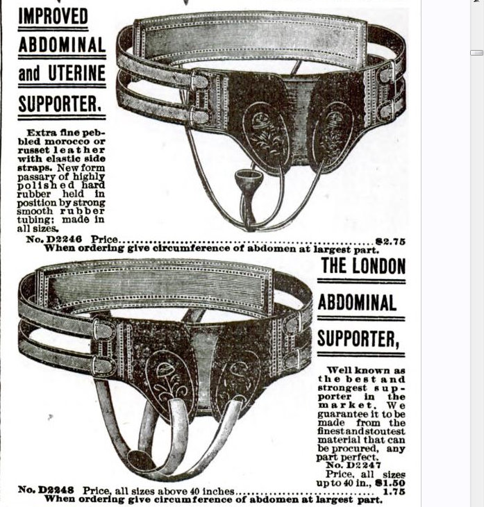 Here's an illustration of an "Abdominal and Uterine Supporter" from the 1890's.