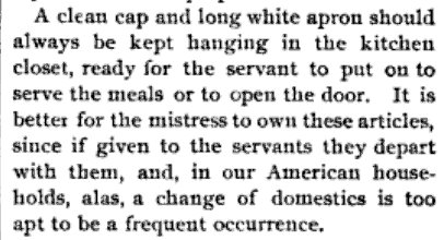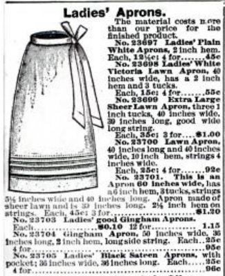 All very good points, and I'd not thought much about how important the size of the apron piece was. I would still go with it being a bibless one, from the description, but if it was half of one of those long white aprons, that's quite a lot of apron miss!