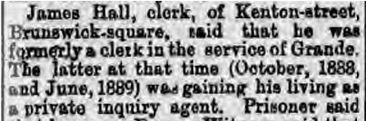 Just the other day I was going over some old newspaper snippets I had on Grande and noticed that in one of them, James Hall, Grande's clerk, gave two dates concerning Grande's working as a private inquiry agent: