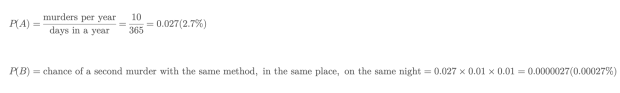 Conclusion: The probability of two unrelated murders of women on the street by throat-cutting within the same hour is statistically improbable.