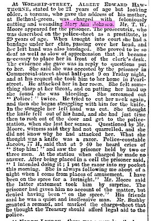 Mary Ann Johnson was a prostitute attacked by Albert Hawthorne