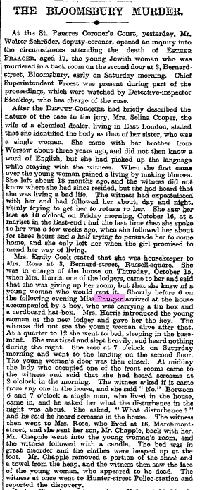 I think it likely the Estelle Praager you mention refers to Esther Praager, a 17 year old Jewish woman murdered in Bloomsbury in 1908