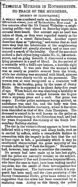 Anyone know of any details concerning the murder of a prostitute found dead in Rotherhithe in June 1893. The killer had cut her throat.