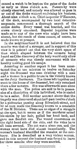 Does anyone know anything more of this murder than the press report above? The victim's name? The press once again linked it to the Ripper.