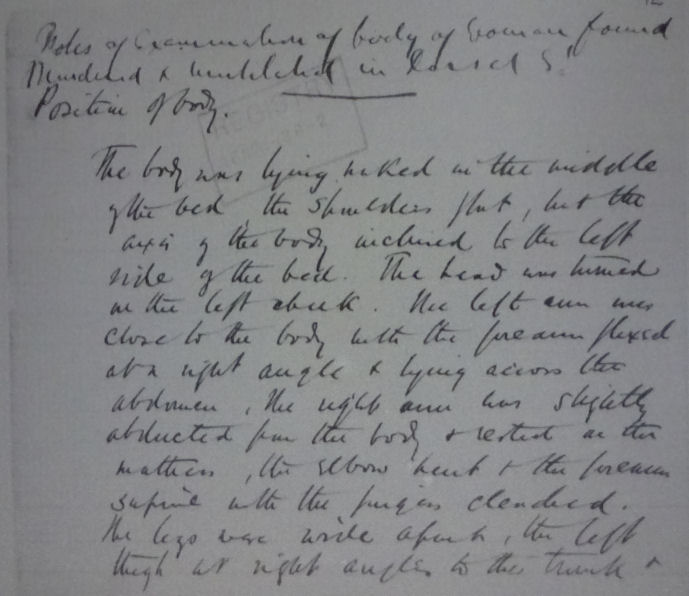 Well a copy of the first page is reproduced below (for the second time in this thread) and the very first words at the top of the page are "Notes of Examination of body of woman..."