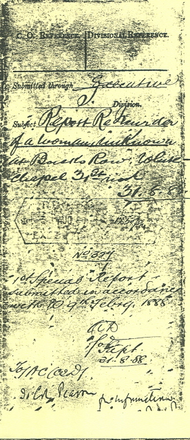 Subject report Re murder of a woman unknown at Bucks Row, Whitechapel 31st inst.Submitted through Executive