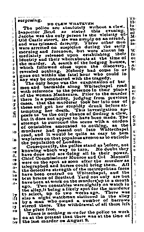 [I]The pavement beneath the body of Alice McKenzie was still dry, placing her death sometime after 12:25 A.M. and before 12:45 A.M., when it began to rain.