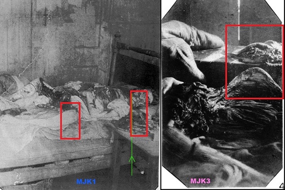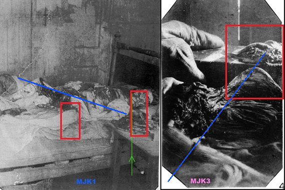 Now, if you believe in some camera-effect, try this: put a piece of fabric shaped like Kelly´s visible bone on a bed and another piece of fabric shaped like the flesh on a table standing parallel as in MJK3.