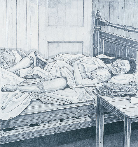 There is a thread, called Sickert's Mrs. Barrett, from back in the Spring. In that, you'll find a brief discussion of this drawing. It's not by Sickert, BTW.