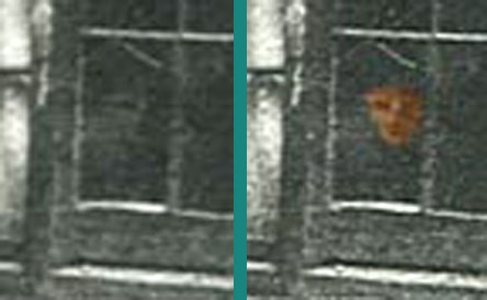 Originally posted by nickspry View PostHope this hasn't been endlessly debated already, but I spotted this ghostly face peering out of one of the lower panes in the window.