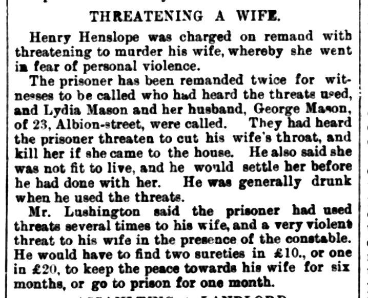 I believe I have found an interesting article that refers to the threats Henry made towards his wife in 1886.