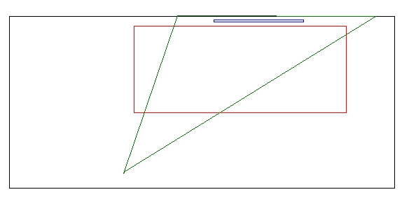 The first pic below (forgive the crude graphics) shows how things would have to be for the bed to be hard against the alleyway wall. Blue is the panelled door, red is the bed, and green is the rough field of view of the camera