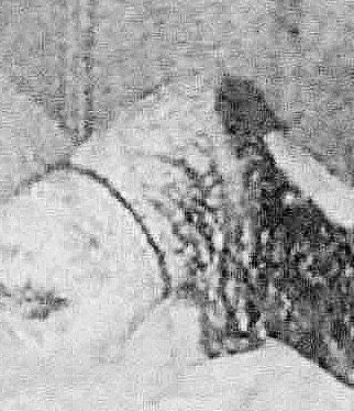 I was watching Time Team (UK archealogy prog, for anyone not familiar with it) the other day, and it showed a scene with Tony Robinson skinning an Eel. For some reason it seemed familiar, but I couldn't place it. Then I was looking at this enhancment of MJK full length and it clicked! Is there any possibility that the line which has variously been described as a garter or a stocking or a scratch on the negative is actually loose skin, which has been pulled down much in the manner of literally skinning the leg? I've included a close up of the area I mean so you all can see what I'm burbling on about!