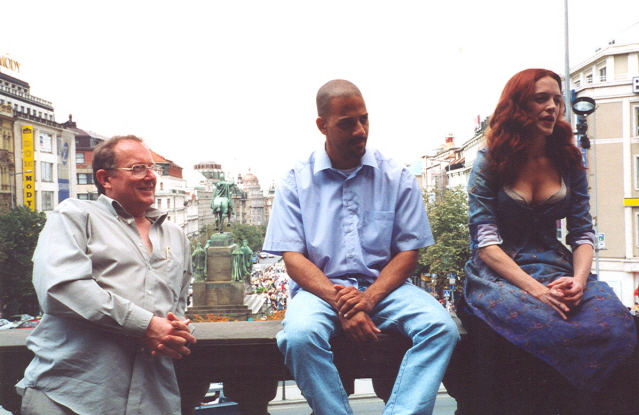 Here's a shot of me with the director Albert Hughes and Heather Graham (in her Mary Kelly garb) outside the National Theatre in Prague during the shooting of From Hell. You will see that she is a very nice girl and it was great pleasure to meet her.