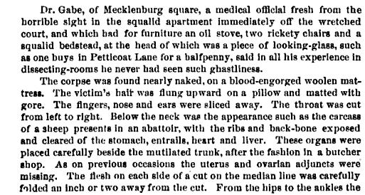 Since Dr. Gabe pretty much vanished from Ripper lore after all his talking to reporters, he could very well have added to his story or forgotten the true details.