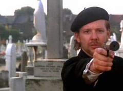 According to Moore, the 1987 film "A Prayer for the Dying" starring Mickey Rourke was filmed in part in Leytonstone Cemetery. Moore says in the interview that the funding for the first gravestone was given to John Morrison by Mickey Rourke. How they came to know each other and how the offer was made - if indeed the story is true - is not made clear.