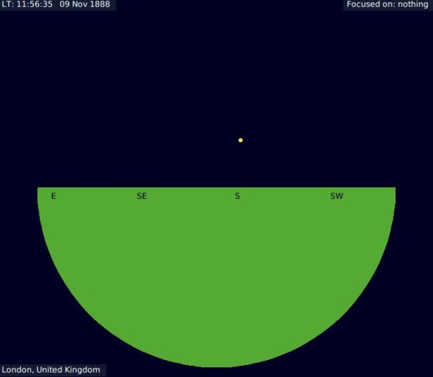 Somewhere I've got the sun's position and angles etc for November 9th 1888. I'll see if I can dig them out.