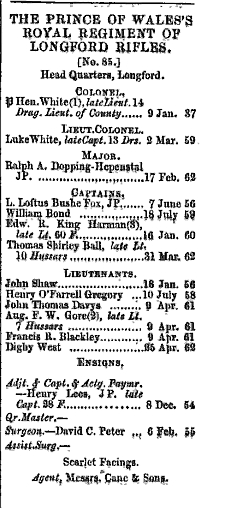 Occupation of father: Colour Sergeant 35th Regiment