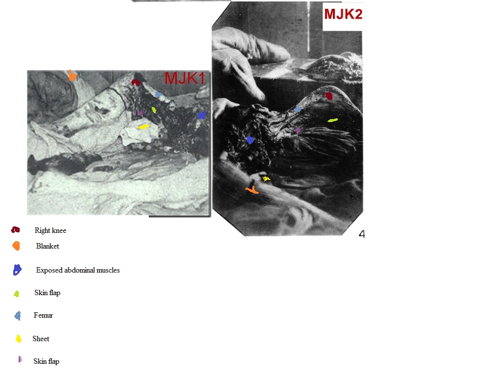 I've revisited my 3D models and updated them. I now have what I think is an accurate 3D set up of MJK1. But Using that model and repositioning the camera to the MJK2 position I find than nothing lines up. I'm not even sure if I can get the camera to depict MJK on her own without repositioning her legs. WHich makes me think that MKJ's body (legs) was moved as they photographed the scene.
