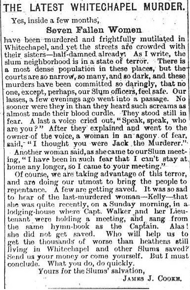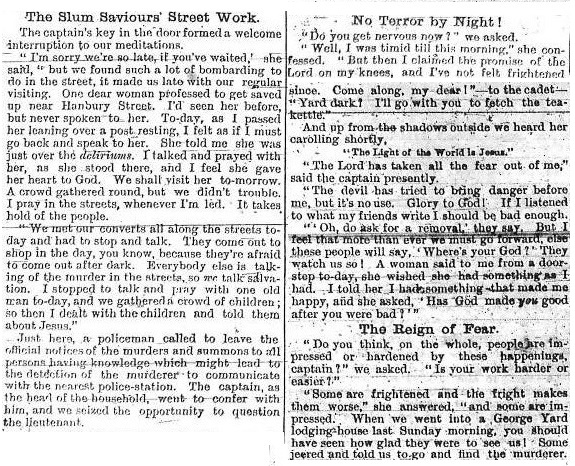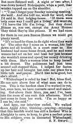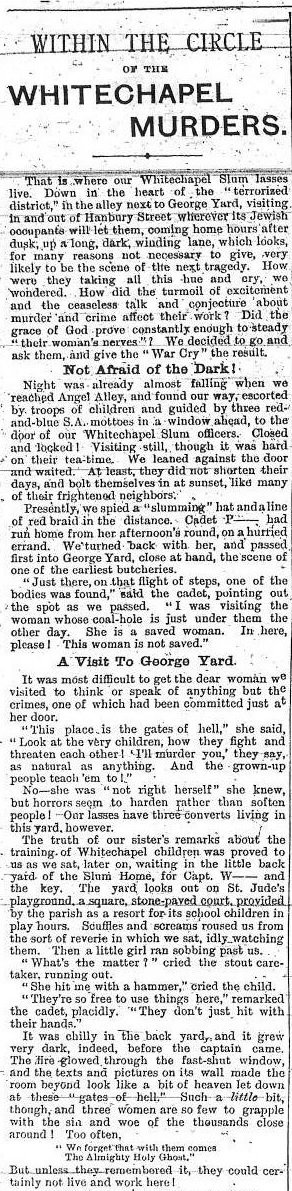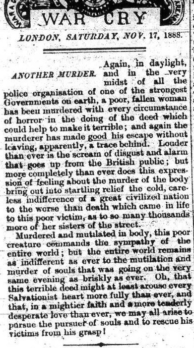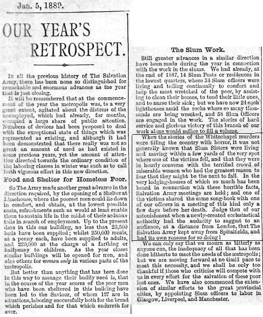 Archives.org only has the Canadian War Cry, not the London ones. That's why I wasn't able to find the issue in question.For the England War Cry for 1888, you probably have to go here in person: