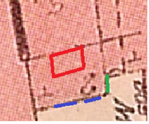 This drawing is done directly on Goadīs fire insurance plan and it has the correct measures of the walls and the doorway and the correct position of the bed.