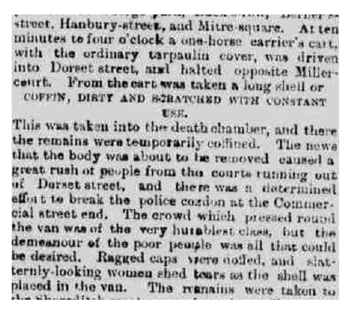 Some newspapers wrote that it was the same coffin they used for Polly Nichols.