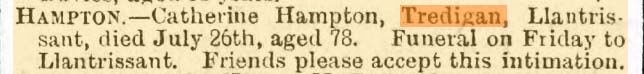 You are probably already across it, but if it's of any use, the only Tedigan I could find was a death notice in various Welsh newspapers at the end of July 1886.