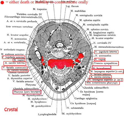 Since the Macnaghten sequence is typified by experimentation in neck wound type, and since Ada precedes the sequence, I thought I would float this idea. Below is a diagram (the one in red), that shows a "no-fly" list for Ada's injuries. Since she lived and communicated orally, these structures cannot have been significantly harmed. There is another diagram of the M1 wounds, the area on the right being wound 1 (the higher wound) and the combined areas being wound 2 (the lower wound). Given our boy's penchant for experimenting and his inability to hold a wound typology, is Ada not more likely to be an M1 precursor than Tabram? Dave