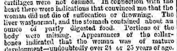 Here is how the London Daily News reported it, on the same date. "Portions of the body were missing."