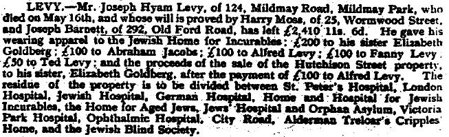 For further biographical information, see Chris Scott's section on Joseph in "A Cast of Thousands" (http://www.casebook.org/ripper_media...seph-levy.html) and Mark King's dissertation on Jacob Levy (http://www.casebook.org/suspects/jacoblevy.html).