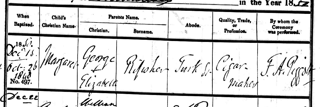 Head: George Ripshaw aged 22 born St Lukes - Cigar maker