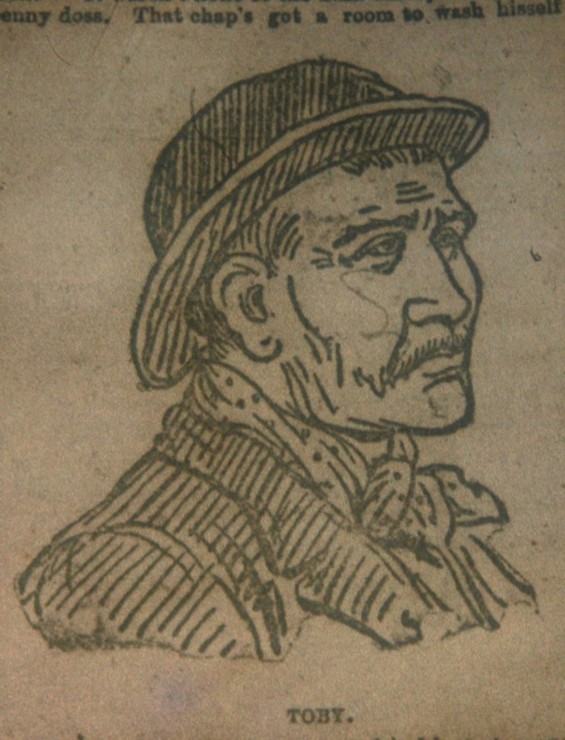 One cannot wander through the dingy streets and mix with the jostling throng without vividly recalling to mind the works of the distinguished writer. Keenly alive to the impressions conveyed by the living, breathing mass of humanity sweeping by, one fancies him on the spot, stopping for a moment to look into the painted face of the woman in draggle tail, gaudy skirts and huge feathered hat, pushing her way along, and thereby creating another Nancy Sykes; of another standing within the shadows of Christ Church and finding another "Poor Joe" in the pale, hollow eyed, ragged urchin, whom the gruff policeman is by no means gently urging to "Move on." An entirely original character would have sprung from his facile pen, could he have come in contact with big hearted, frank spoken, generous, half starved Toby, a tattered, tramp like personage, who, with several other correspondingly tramp like companions is out hunting a clew to a famous murder recently committed, which offered a liberal reward.