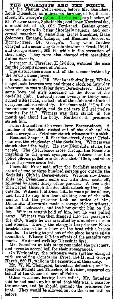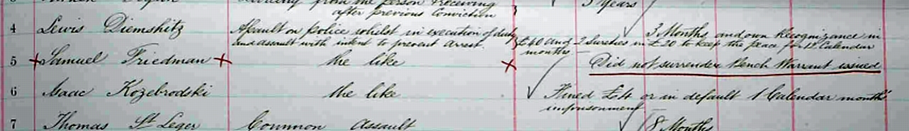 This lists not only Diemshitz and Kozebrodski but also a man named Samuel Friedman who was obviously invoved in the same fracas.