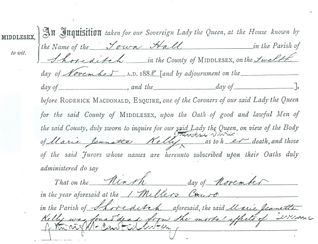 Much against my better judgement I am making a further post to clarify the nature of Gareth's 'piece of paper' with the incorrect address on it. This 'piece of paper' is not a sworn statement nor is it an official police document. It is the standard coroner's form filled in at the end of an inquest giving the result of that inquest, i.e. the cause of death, and signed by the coroner and the jurors. Undoubtedly the form has been carelessly filled in by, presumably, the coroner's clerk and even the parish, Shoreditch, is incorrect for the place of death (Spitalfields). It appears to have been hurriedly completed at the end of the inquest, but as it was not evidence the errors would seem to be unimportant.