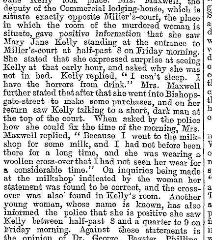 And while I, too, am loathe, at least relatively loathe, to open this issue, I wonder, Michael, what's your main reason for dismissing the suggestion that the body in the bed isn't MJK? I am conflicted: I tend to believe Caroline, but I believe Michael too. And I know there are tons of reasons why that is the body of MJK. But I guess I just want to be convinced.