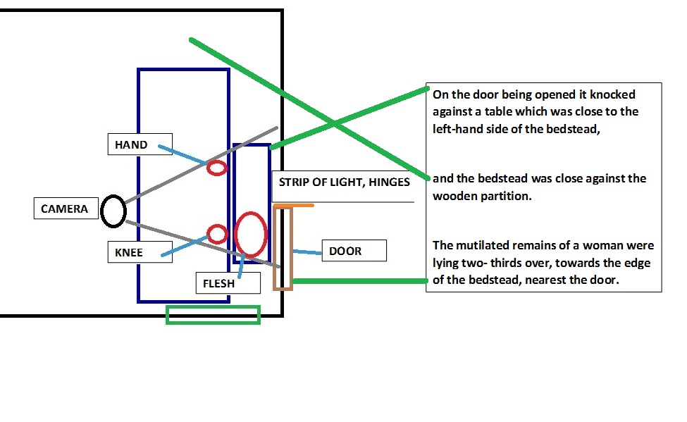 The partition wall is right on top of the bedstead in MJK3! And it runs alongside the bedstead in MJK1! BUT: Phillips did NOT say WHICH SIDE of the beadstead was close against the partition.