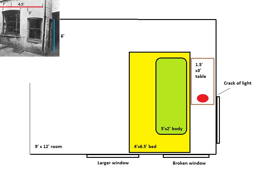 So perhaps the bed was moved by the person taking the photograph? My opinion is it would have been against the partition and Jack attacked MJK from the front through her sheets