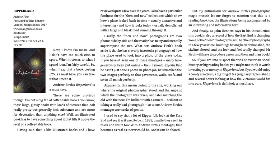 A review by Paul Begg of "Ripperland" appeared in the latest Ripperologist magazine: